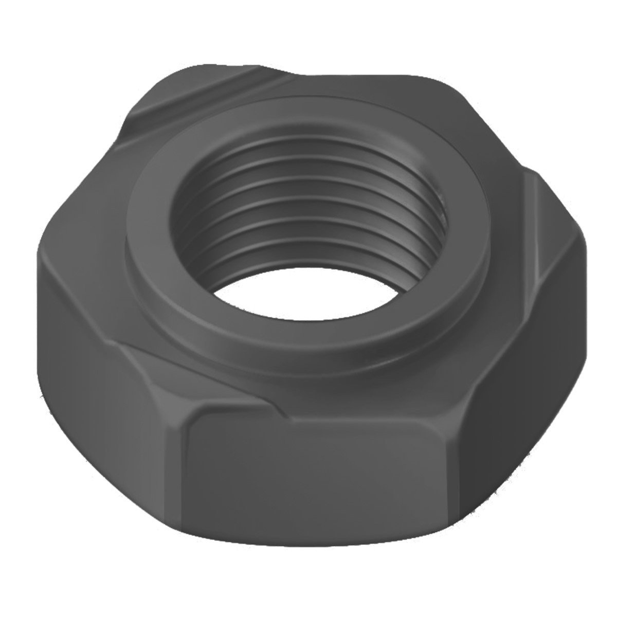 Porca com corpo sextavado e três pontos de apoio chanfrados para solda, conforme norma DIN 929, fabricada em aço com acabamento polido. Projetada para ser soldada diretamente em superfícies metálicas, permitindo montagem prática e roscada sem necessidade de acesso traseiro.